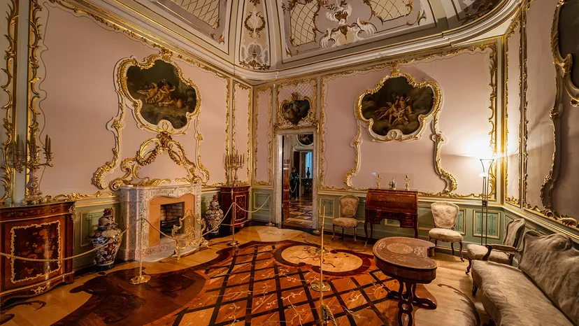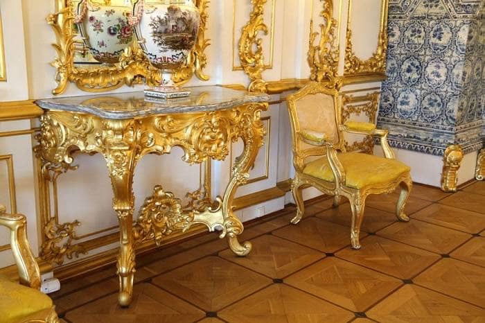 The Amber Room is the main attraction here. Surrounding rooms display period-appropriate furniture in the Rococo style.