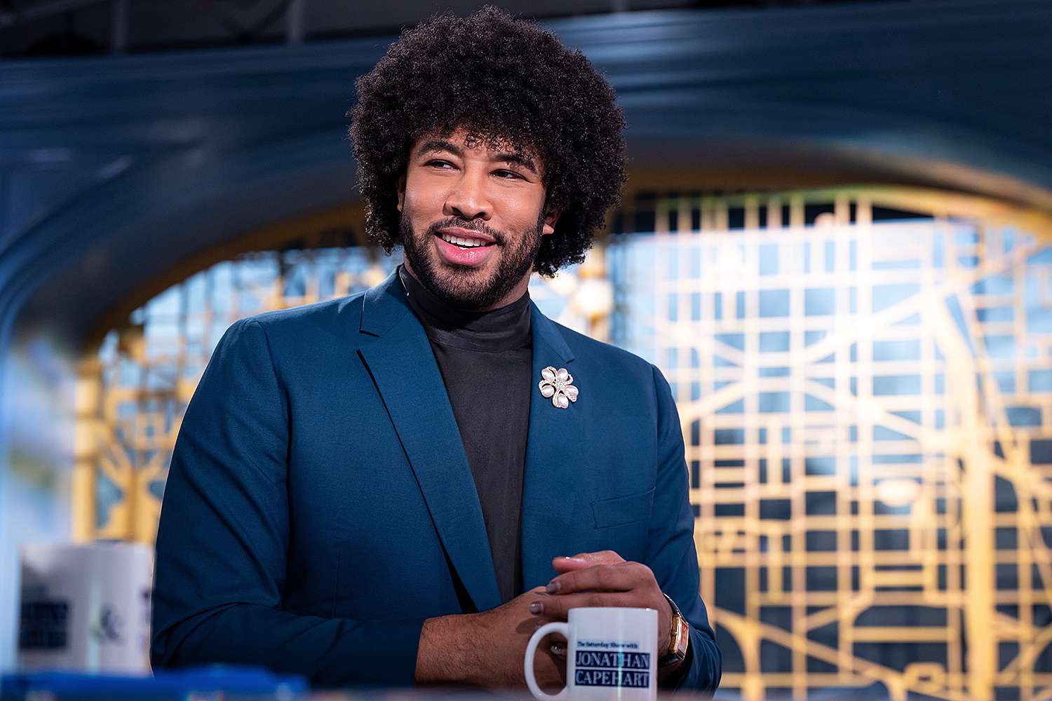 His Afro hairstyle draws compliments from colleagues, often sparking conversations on natural hair in professional spaces.