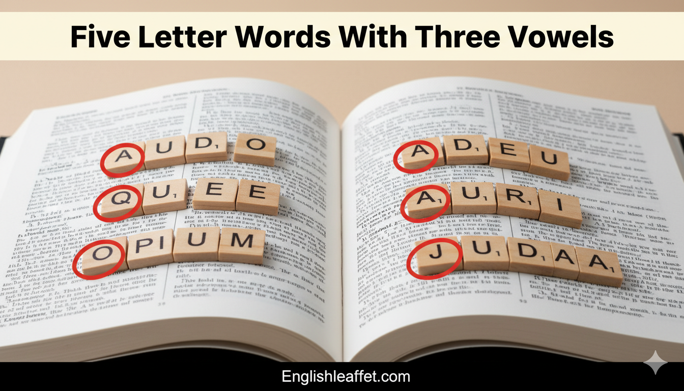 Hundreds of five-letter English words contain exactly three vowels. Common examples appear frequently in daily vocabulary, making them both strategically valuable and likely as actual puzzle solutions.