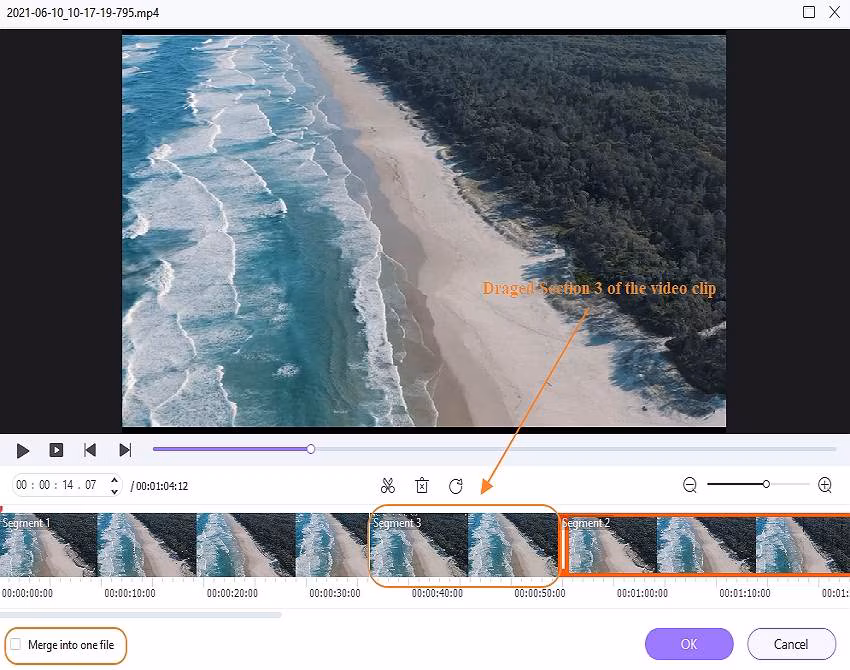 When editing, you’ll see two important markers. Move these to pick the start and end of your clip. You can see your edit in real-time before saving it.