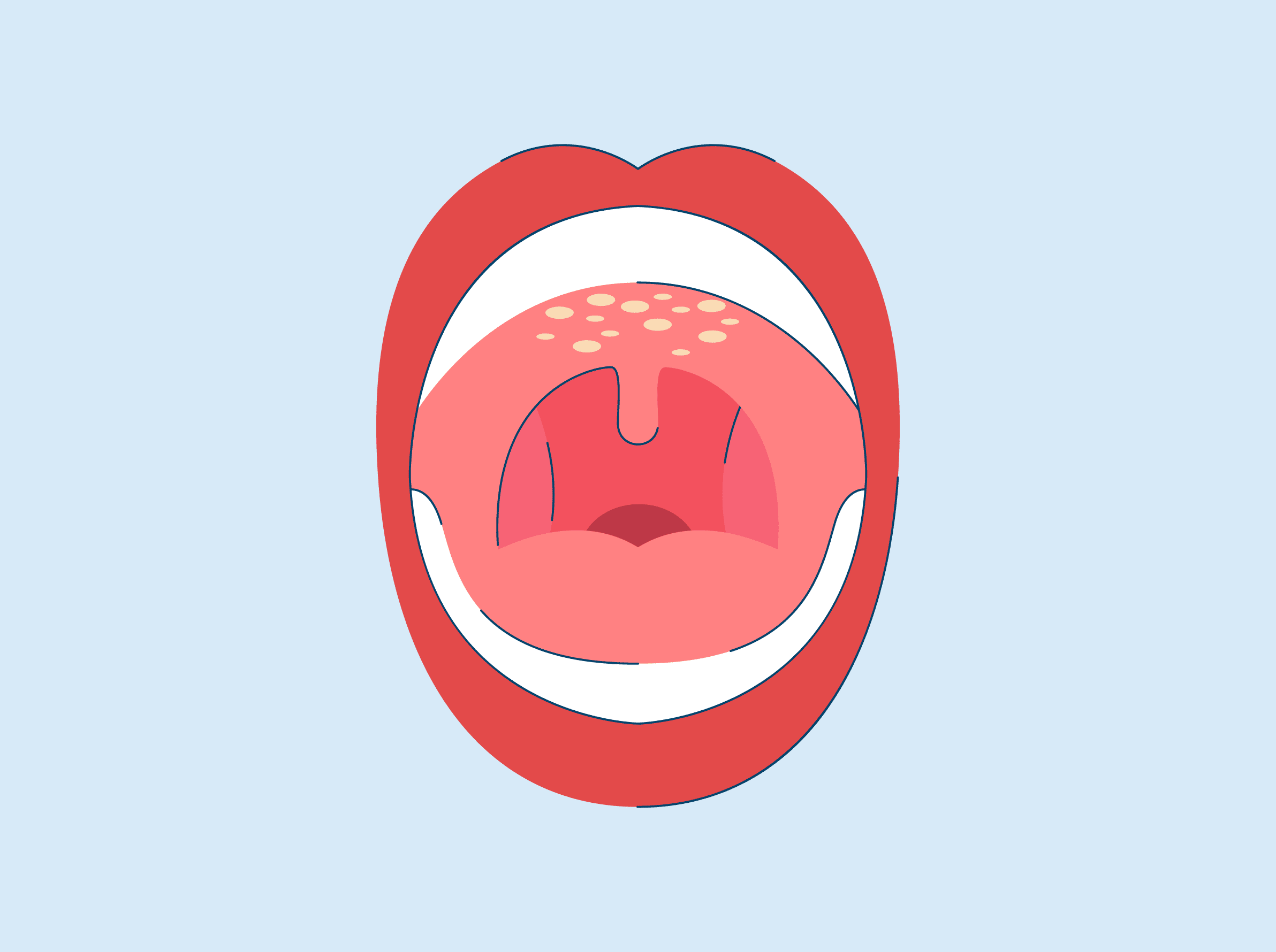 It is more common in people who use steroid inhalers, wear dentures, have recently taken antibiotics, or have a weakened immune system. Treatment requires prescription antifungal medication.